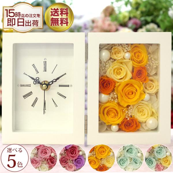 プリザーブドフラワー ギフト バラの置き時計 時計 誕生日 ギフト 置き時計 退職祝い プレゼント ギフト 贈り物 送料無料