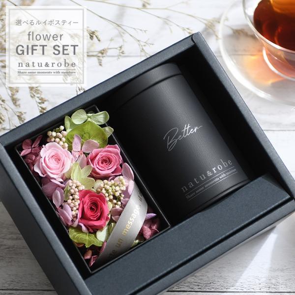花 ボックス フラワーギフト オーガニック 選べる ルイボスティー カップ用10包入りギフト缶×1種 プリザーブドフラワーアレンジ ギフトボックス入り