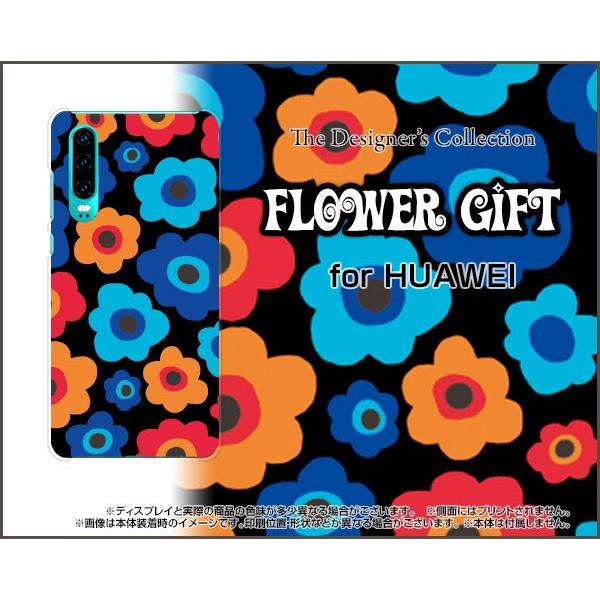 スマホケース HUAWEI P30 ハードケース/TPUソフトケース フラワーギフト(ブルー×オレンジ) カラフル ポップ 花 青(ブルー) オレンジ