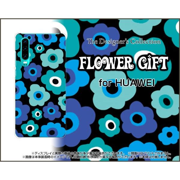 スマホケース HUAWEI P30 ハードケース/TPUソフトケース フラワーギフト(ブルー×グリーン) カラフル ポップ 花 青 ブルー 緑 グリーン